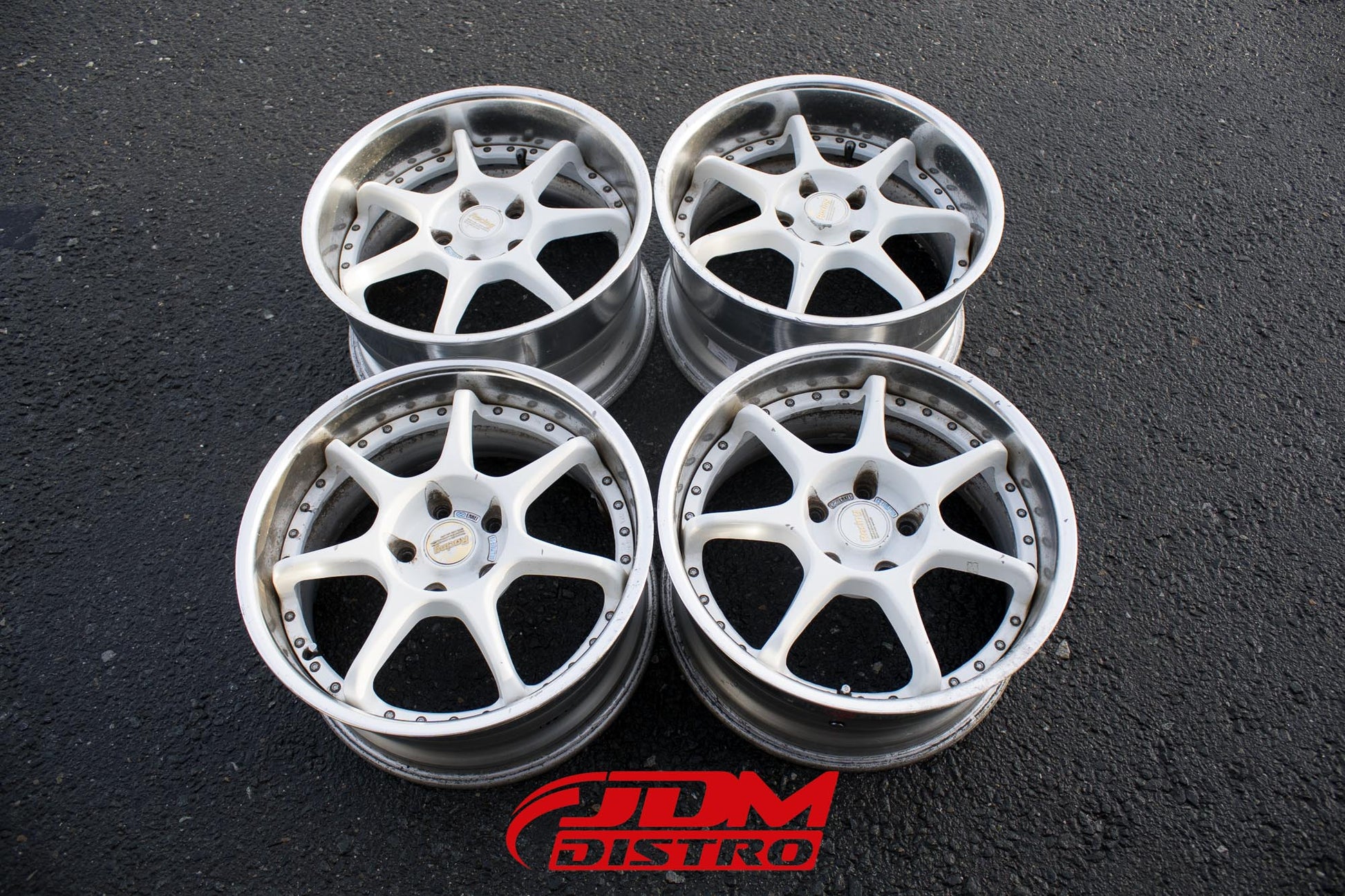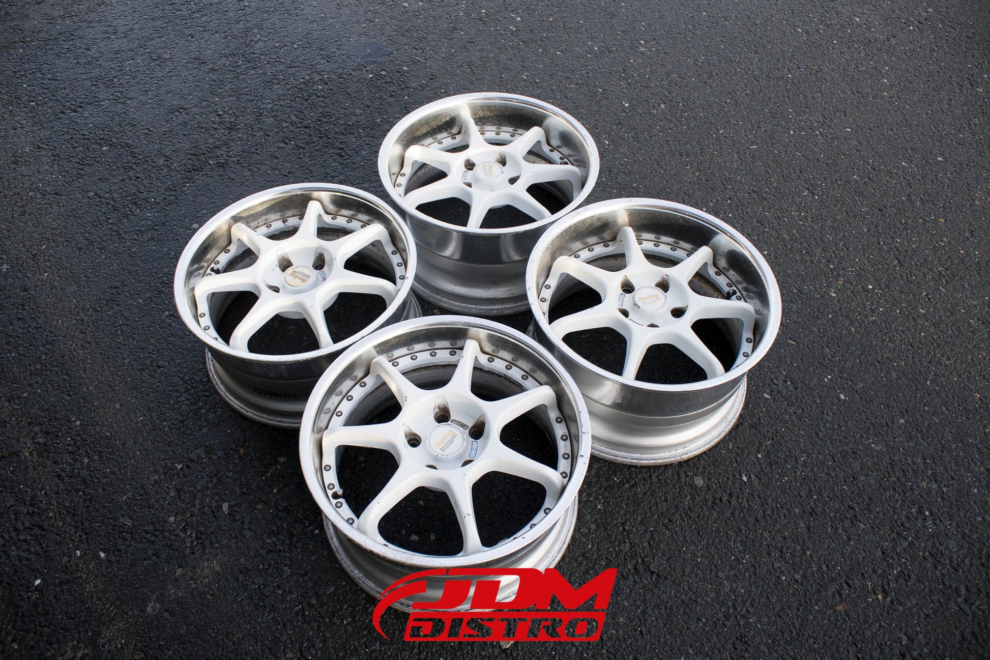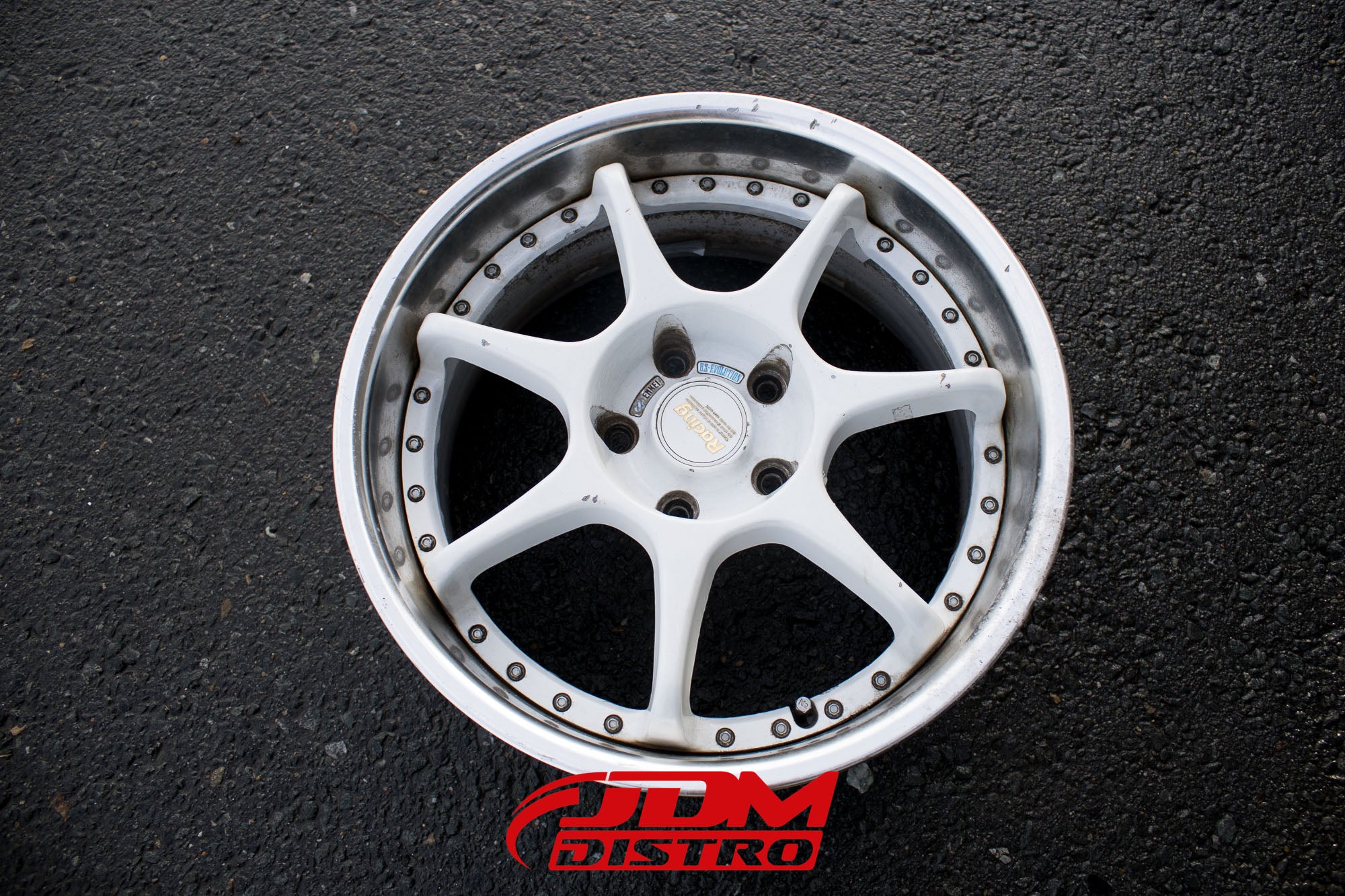 - White spokes, polished lip.