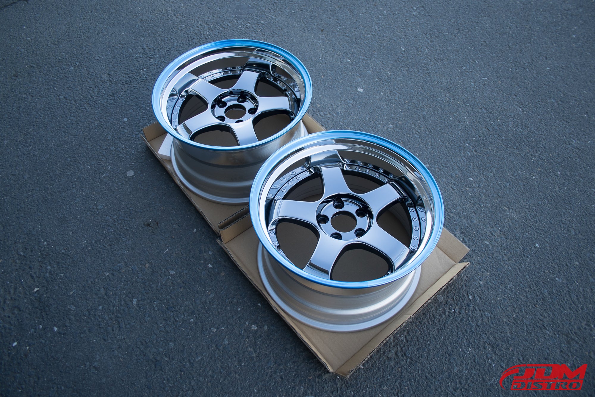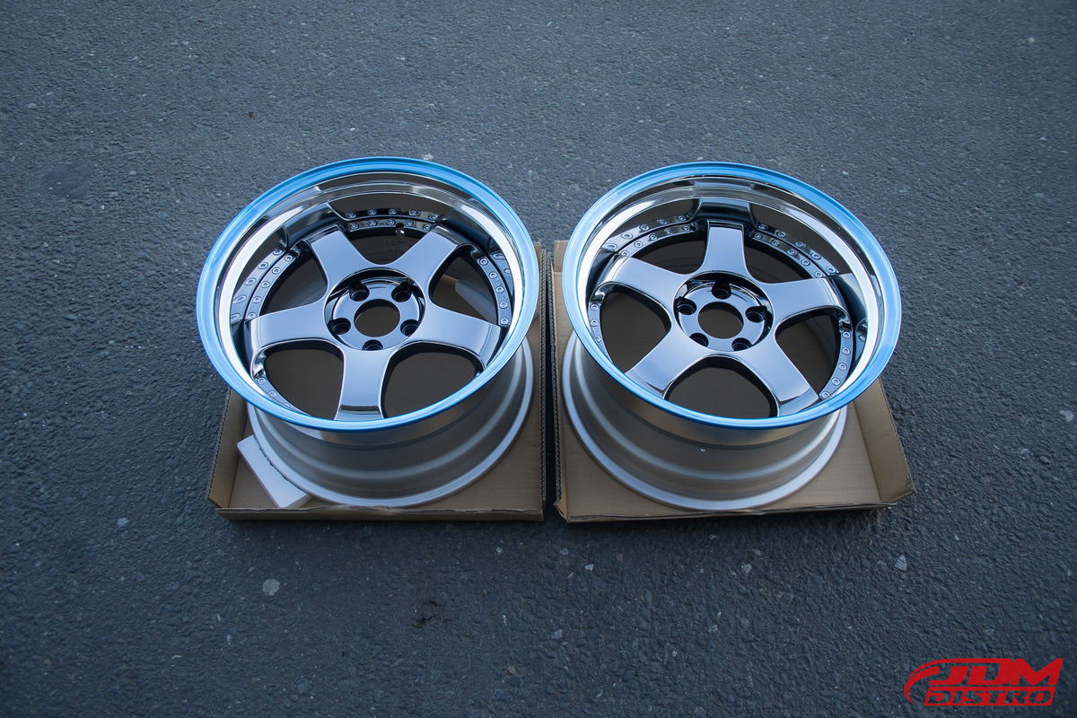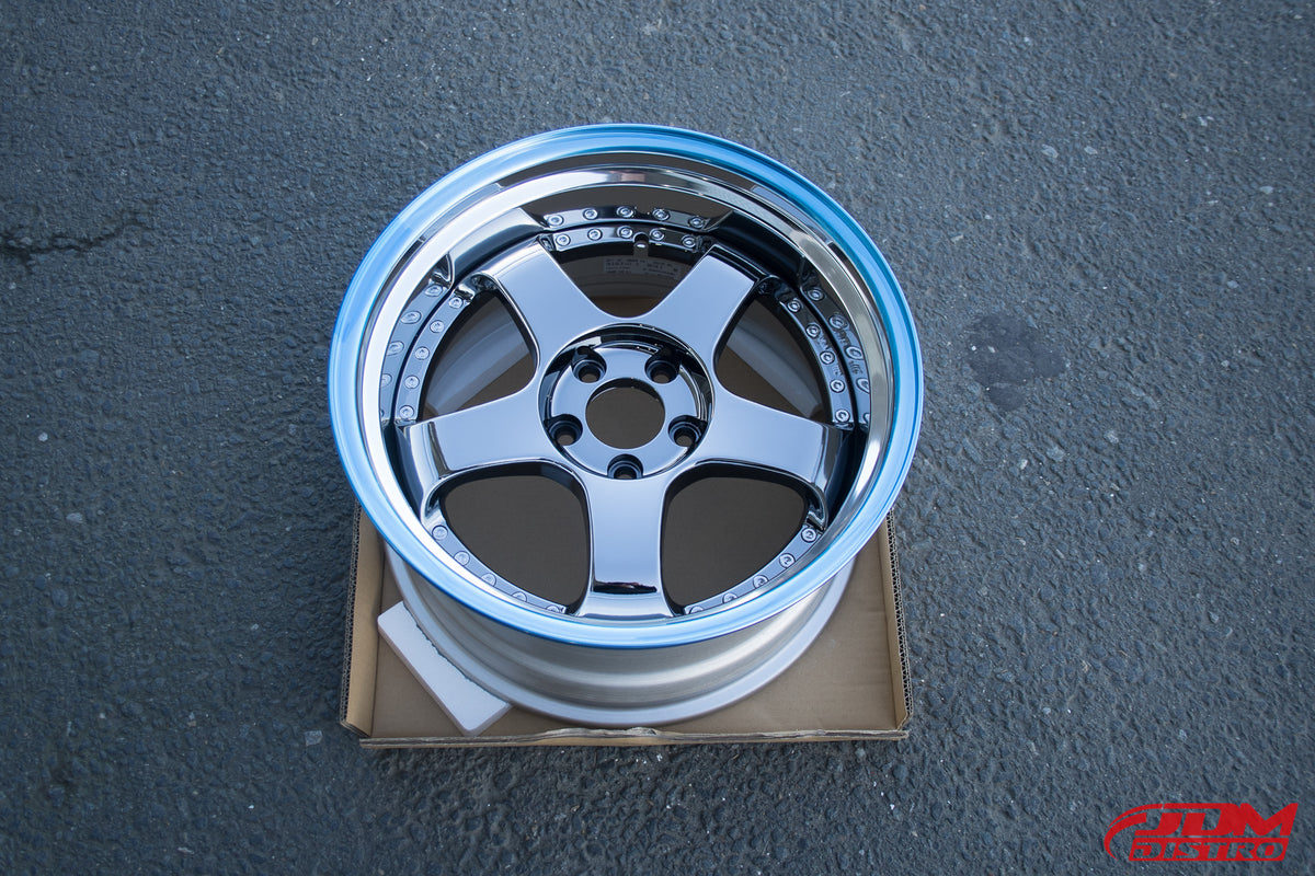 - Chrome centers with polished lips.
