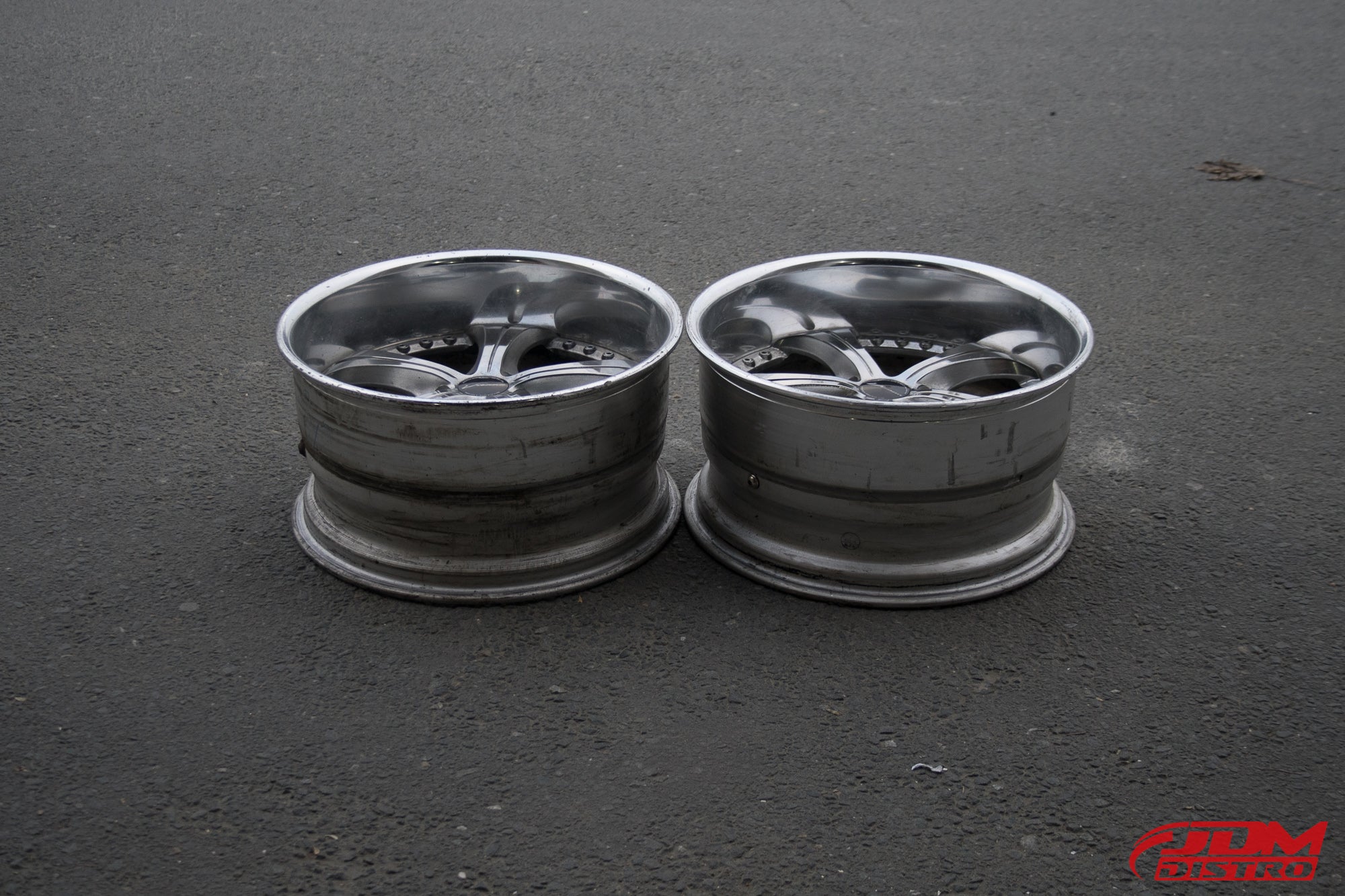 - Chrome centers, polished lips.