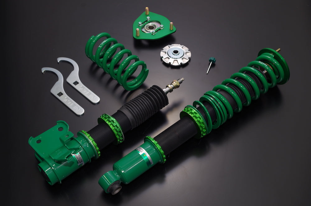 TEIN's support of competition D1 drivers and vehicles has led to the development of Super Drift dampers. Which were specifically developed for the avid drifter. Spring rates and damping force characteristics were chosen to increase car control in a drift, and to aid in initiating a slide. Full length and 16 level damping force adjustment allow suspension tuning for drivers at all skill levels. Pillowball upper mounts with front camber adjustment plates are included*. EDFC compatible for quick and hassle free dampening force changes. Super Drift is the suspension of choice for all levels of drifters.