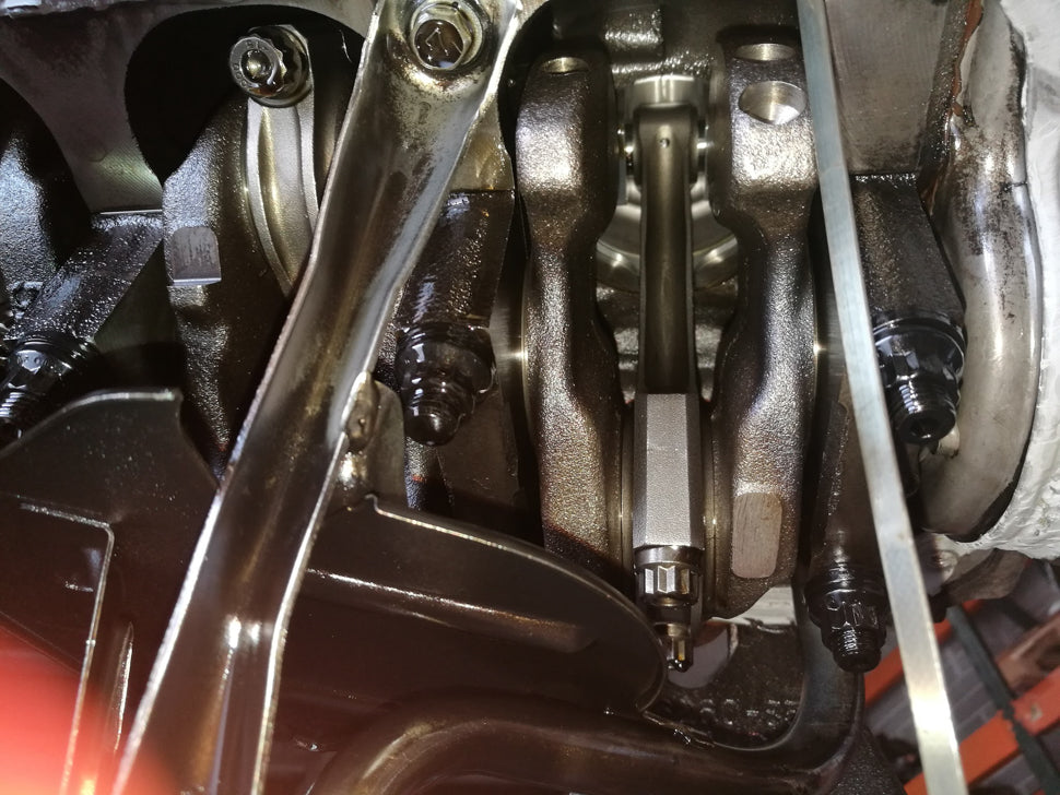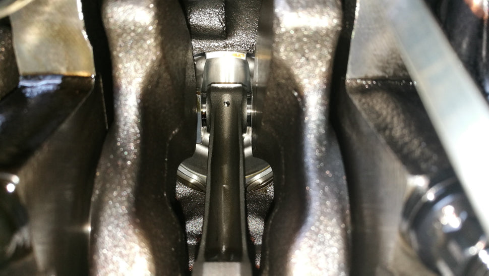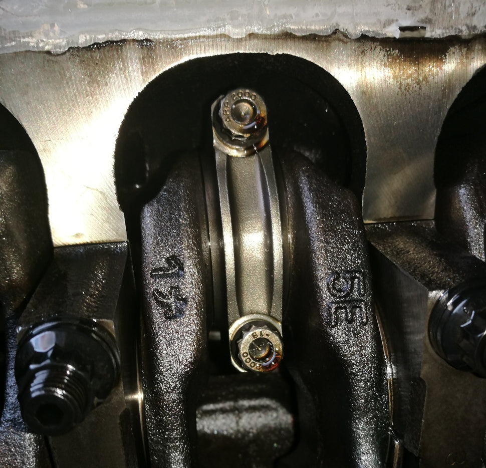 - Forged connecting rods with ARP2000 bolts.