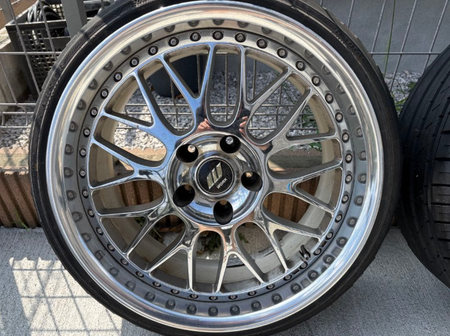 - Chrome centres, polished lips.