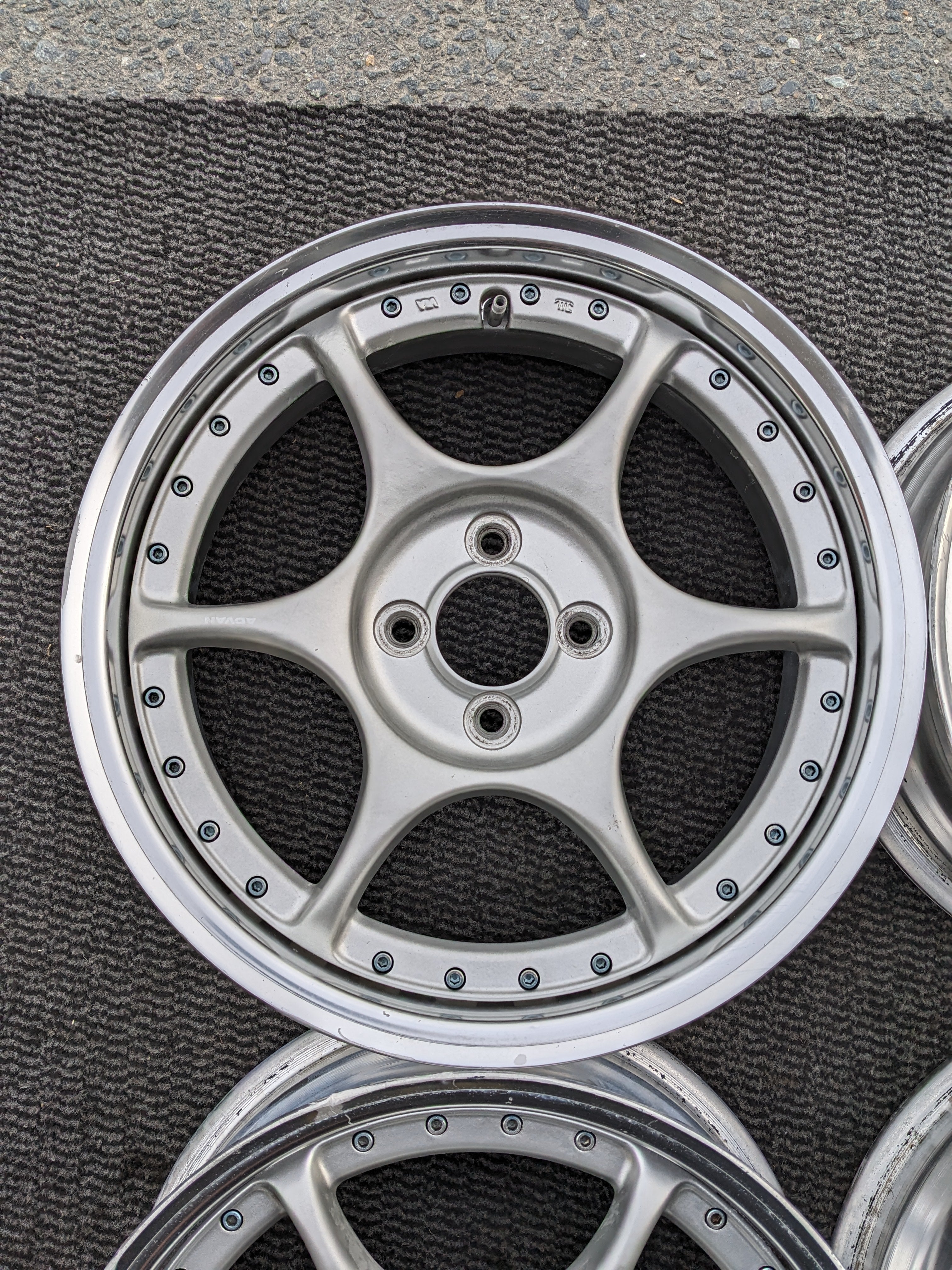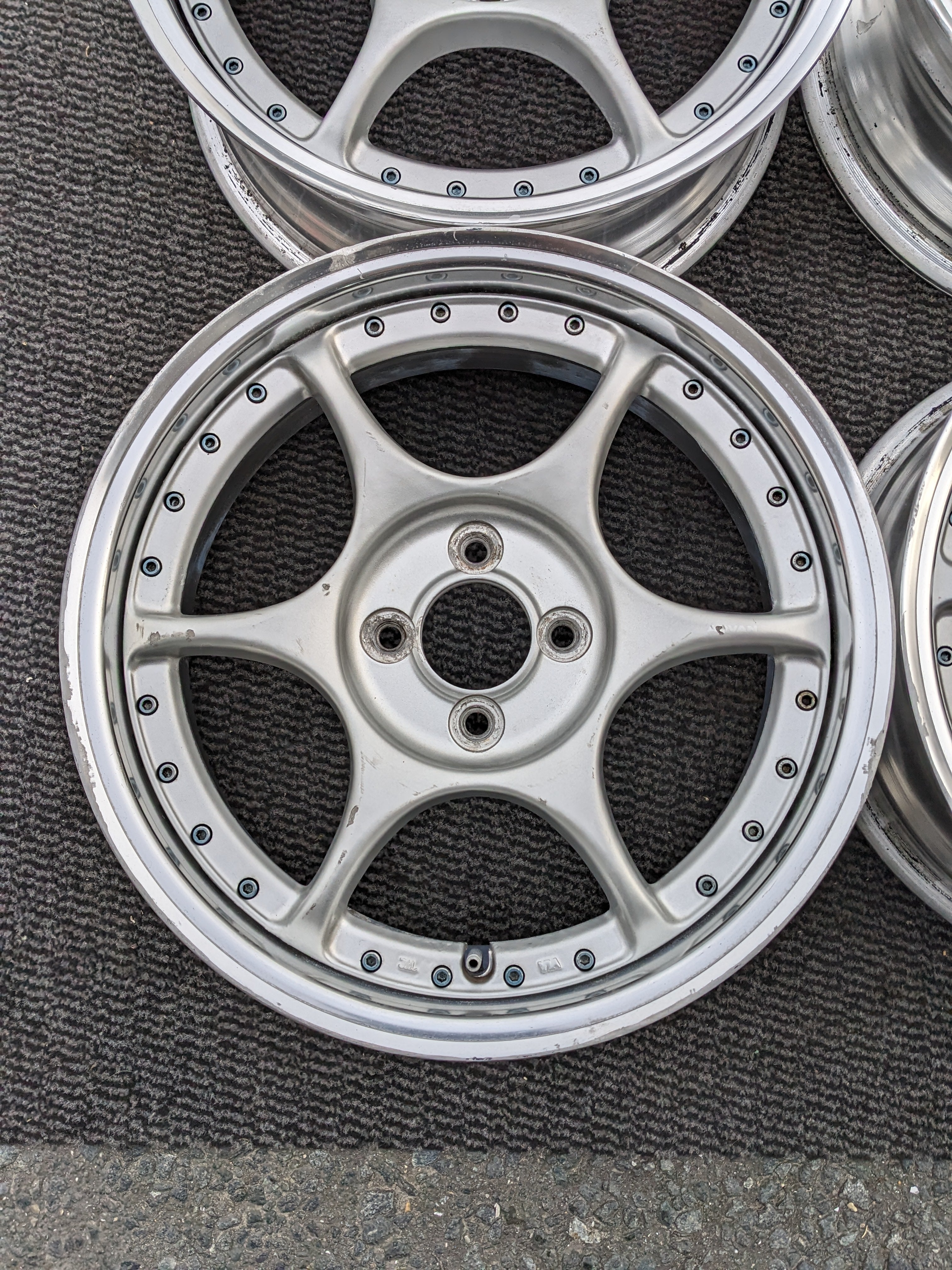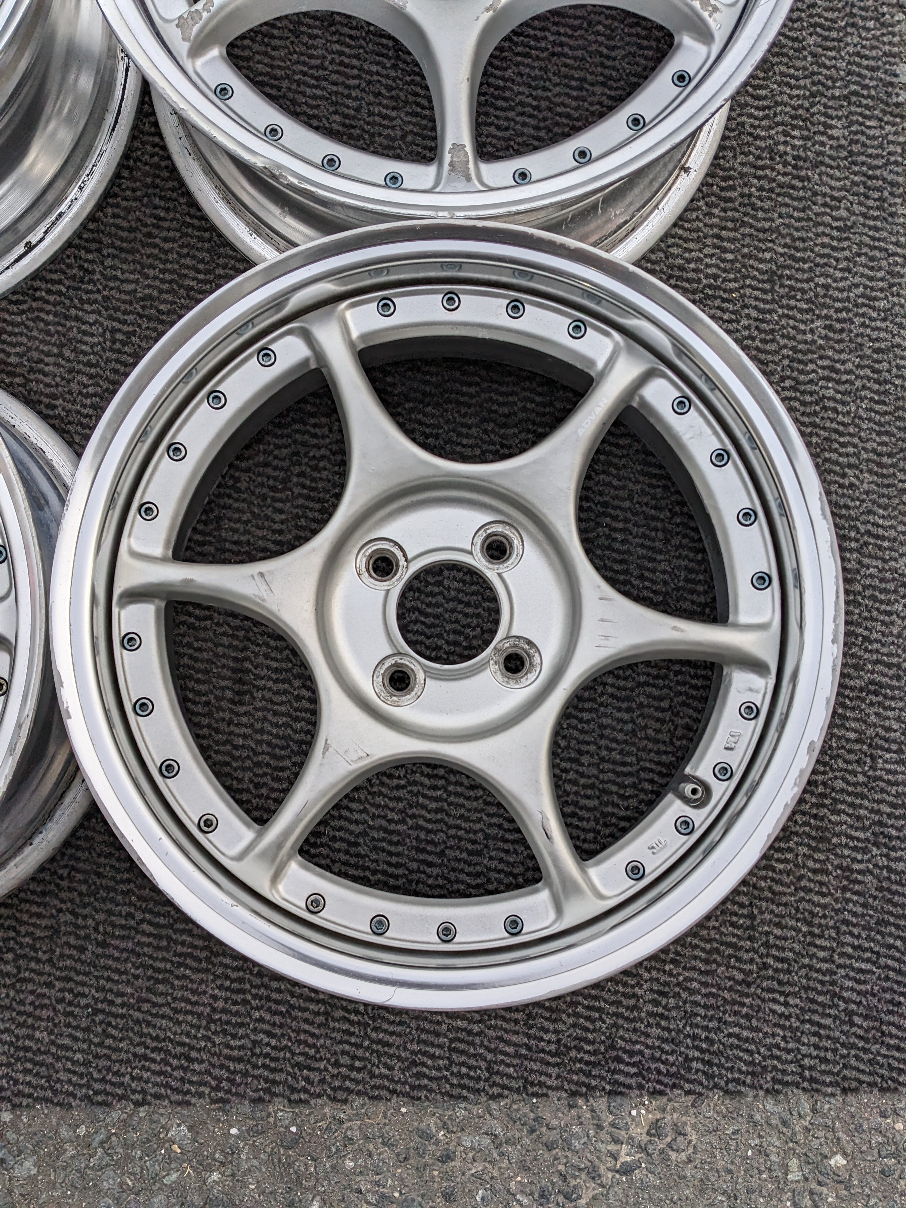 - Silver spokes, polished lip.