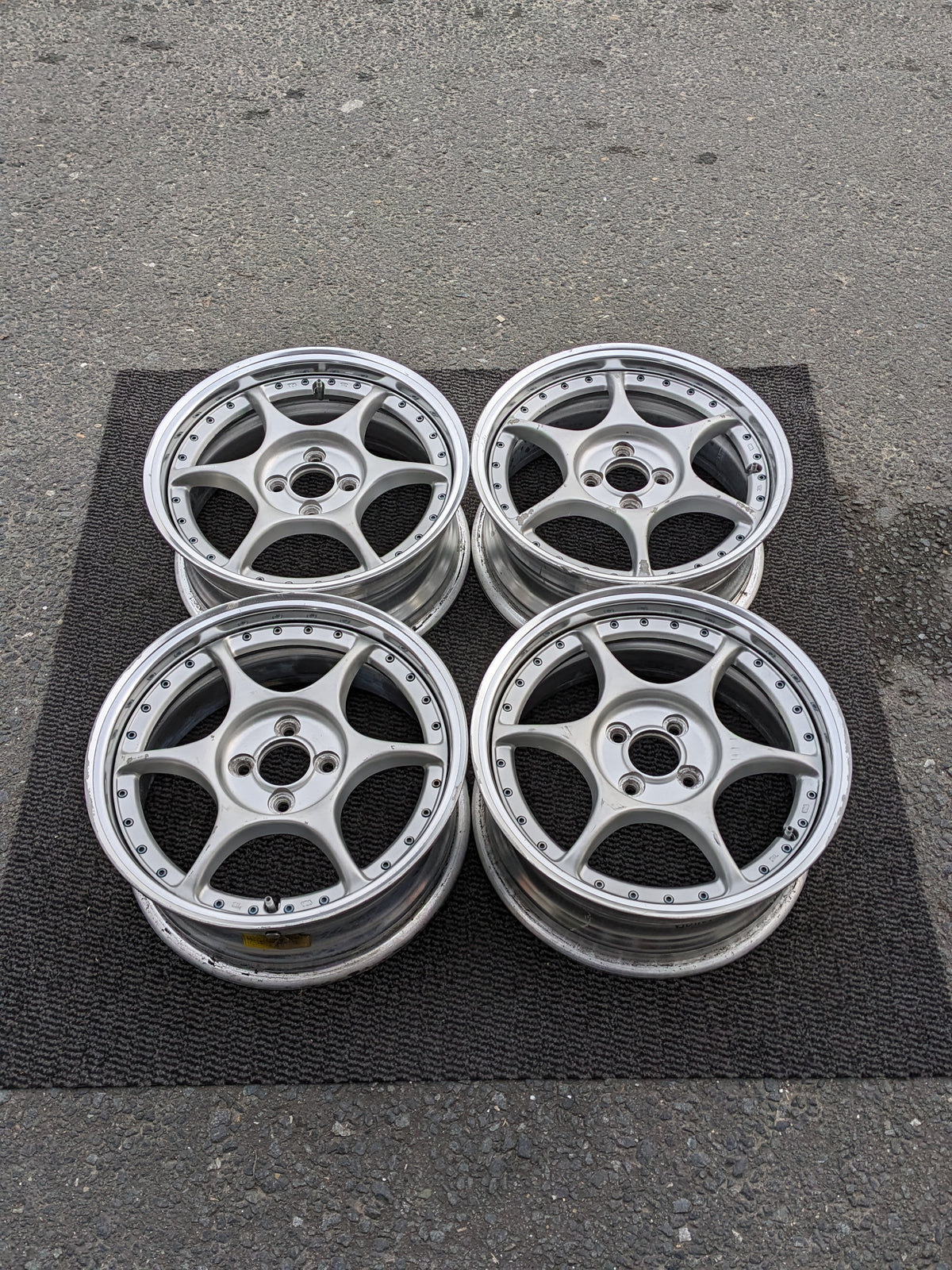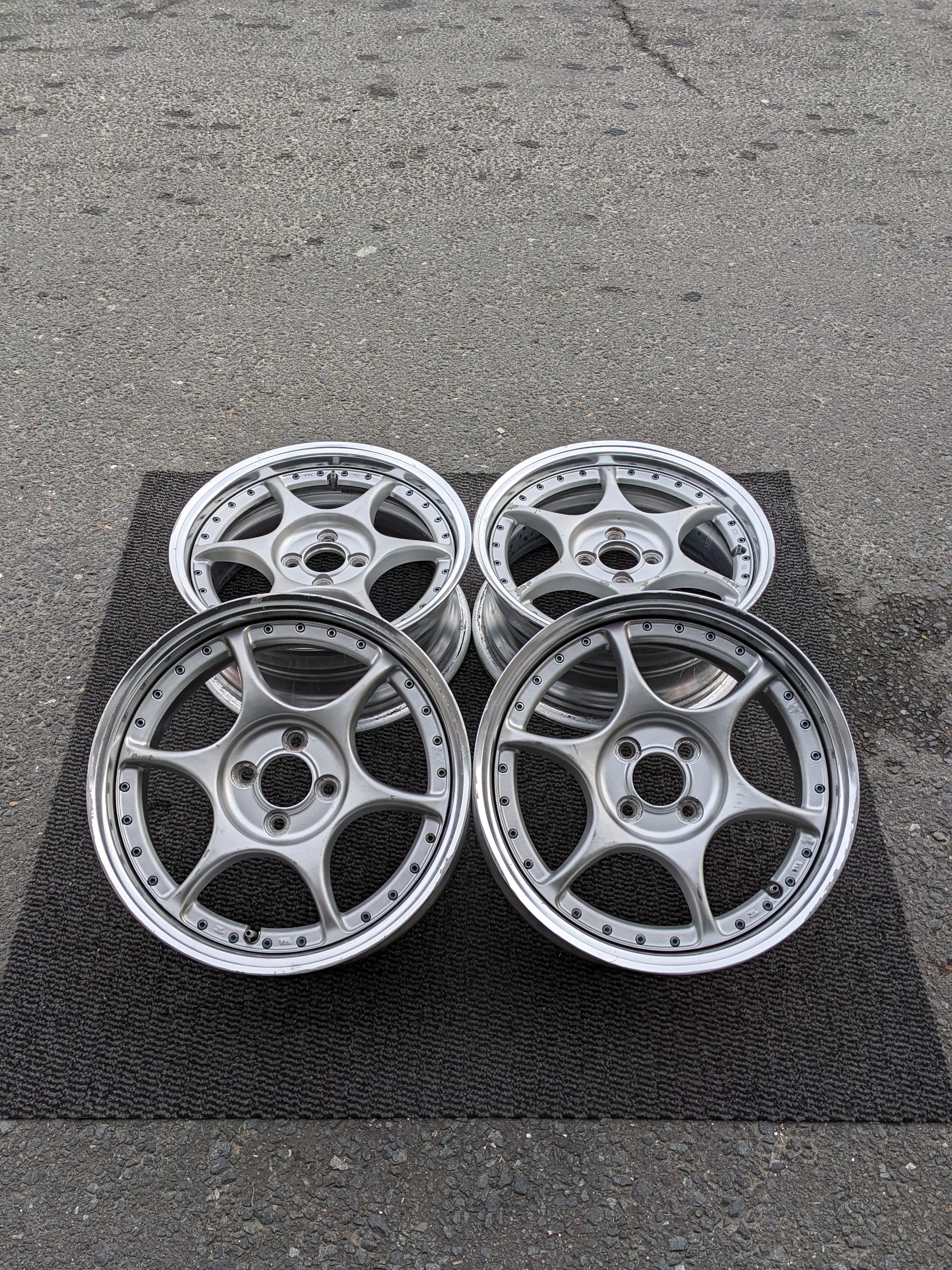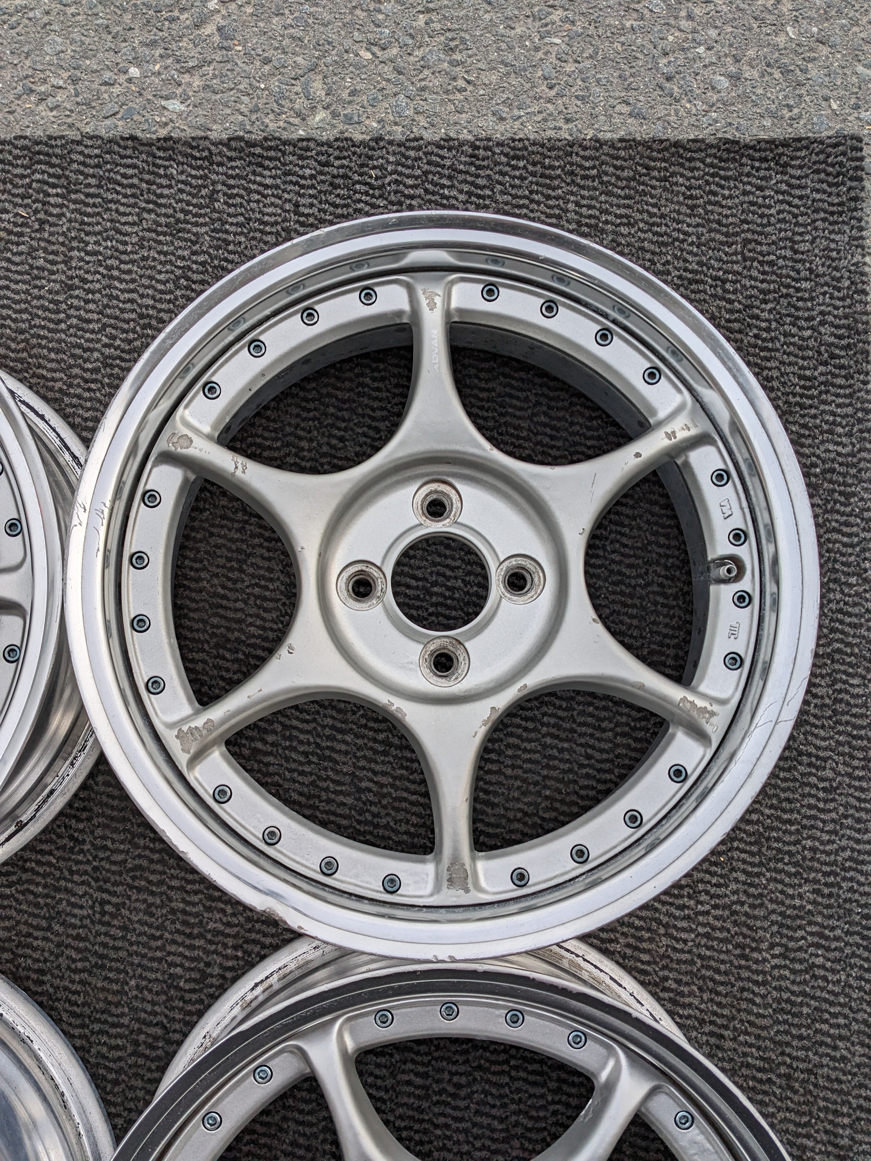 - Silver spokes, polished lip.